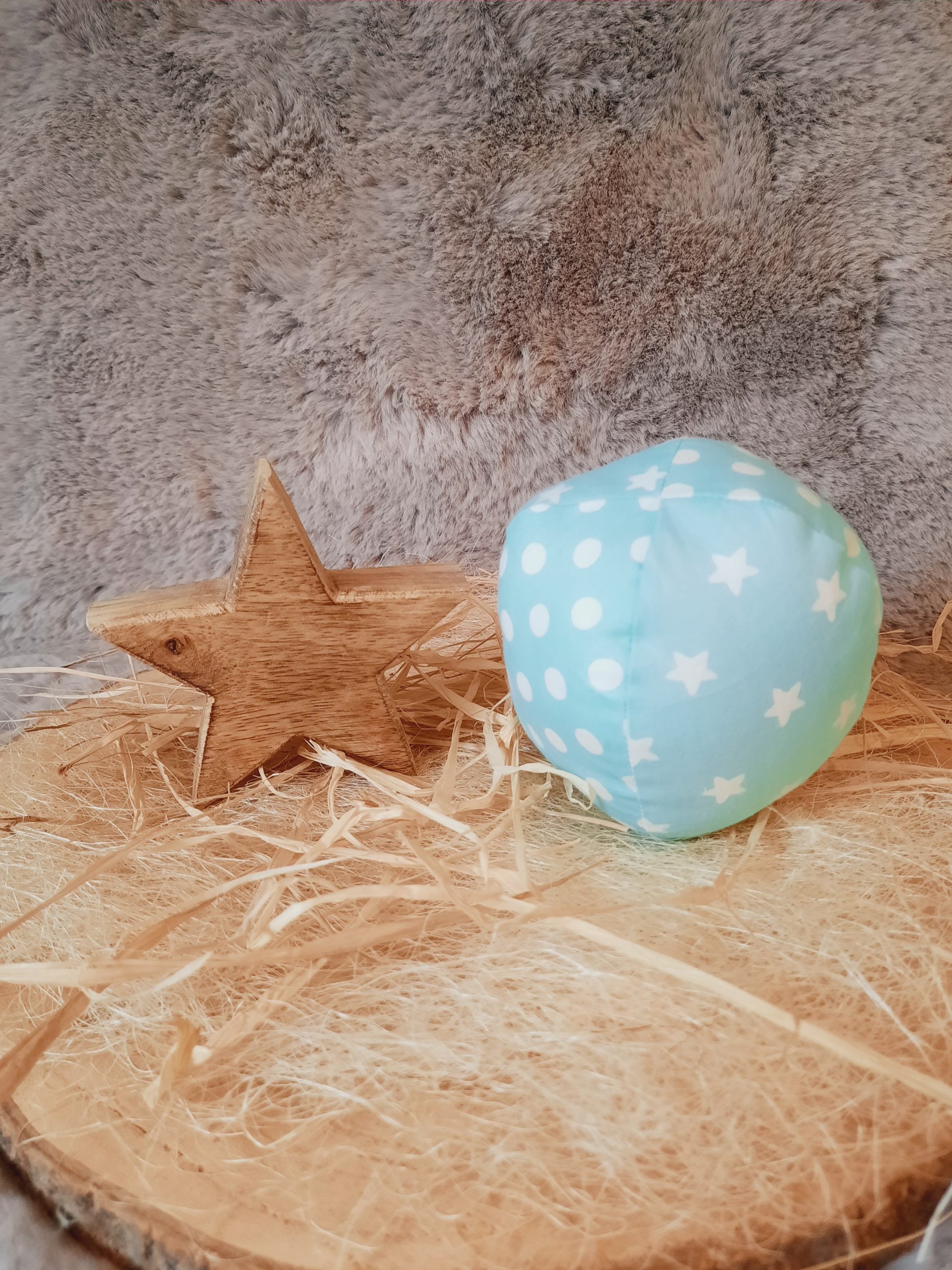 Der Ball ist mit Öko-TEX zertifizierter und Babyspielzeug geeigneter Watte gefüllt.