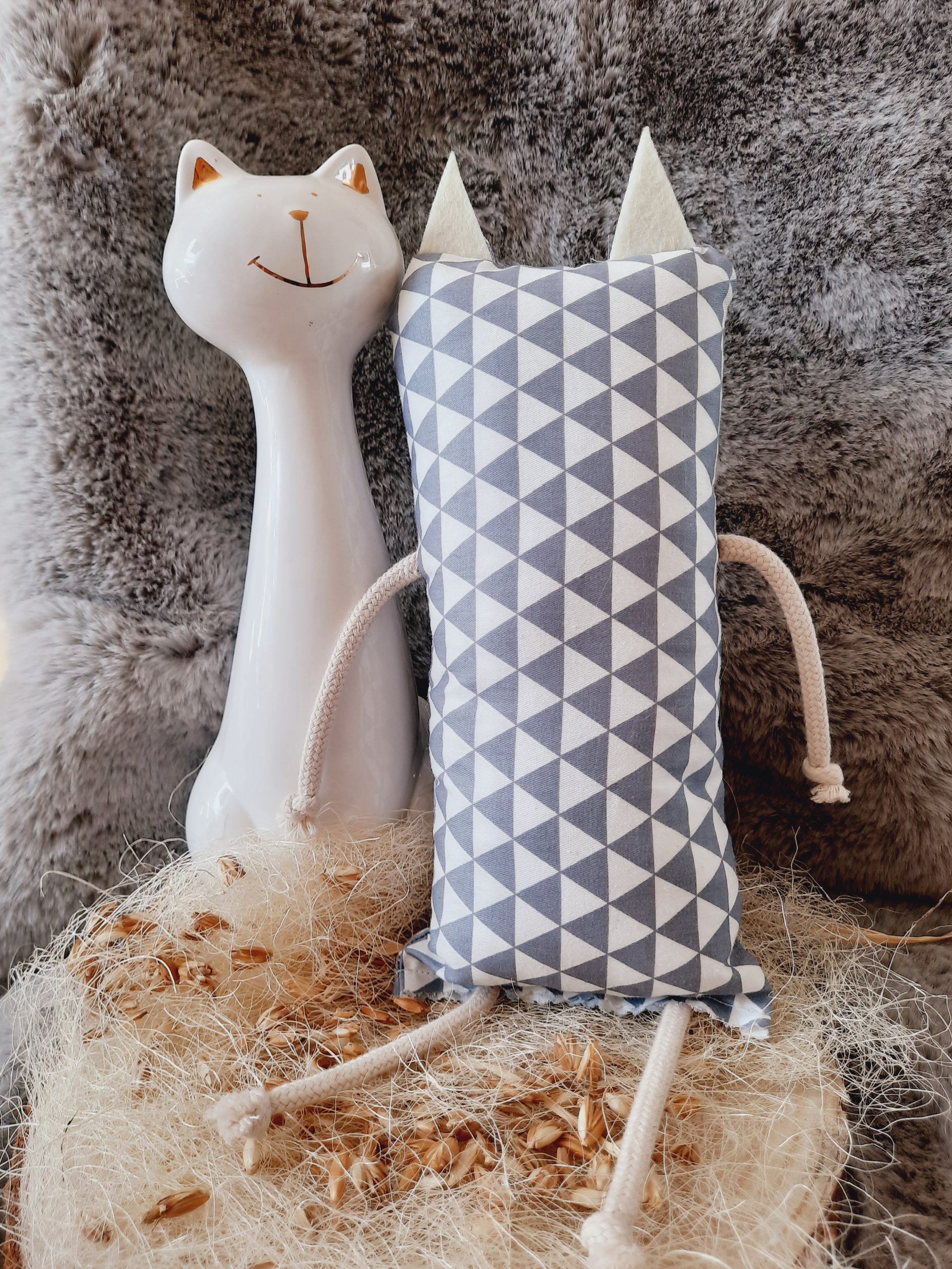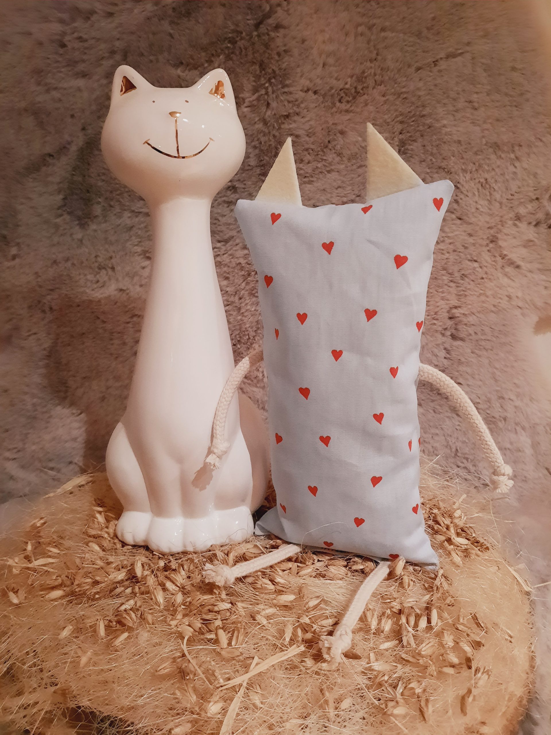 Die Füllung des Katzenkissens besteht aus Dinkelspelzen welche einen angenehmen Rascheleffekt erzeugen und Ihren Liebling zum Spielen animiert.