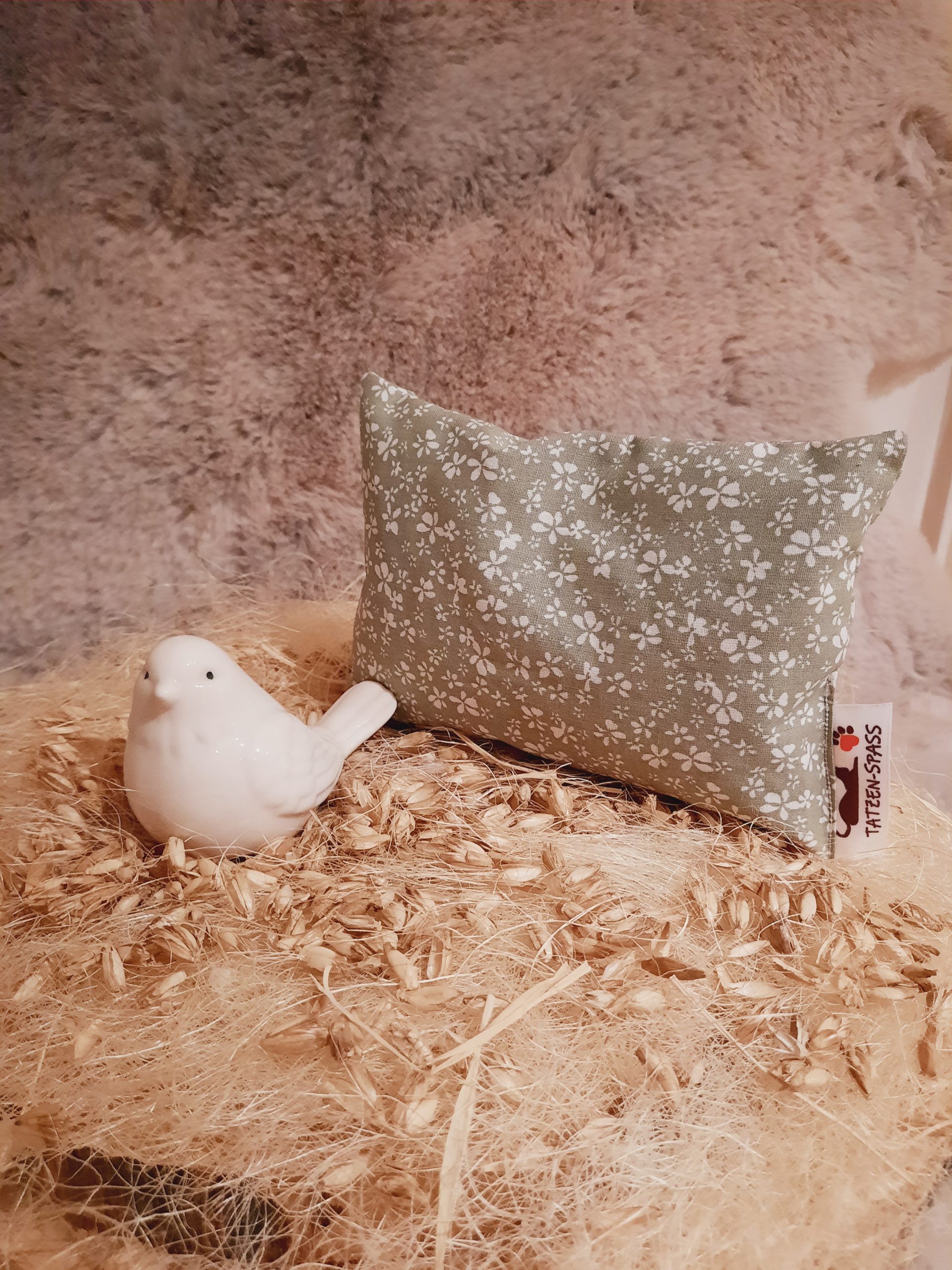 Die Füllung des Katzenkissens besteht aus Dinkelspelzen welche einen angenehmen Rascheleffekt erzeugen und Ihren Liebling zum Spielen animiert.