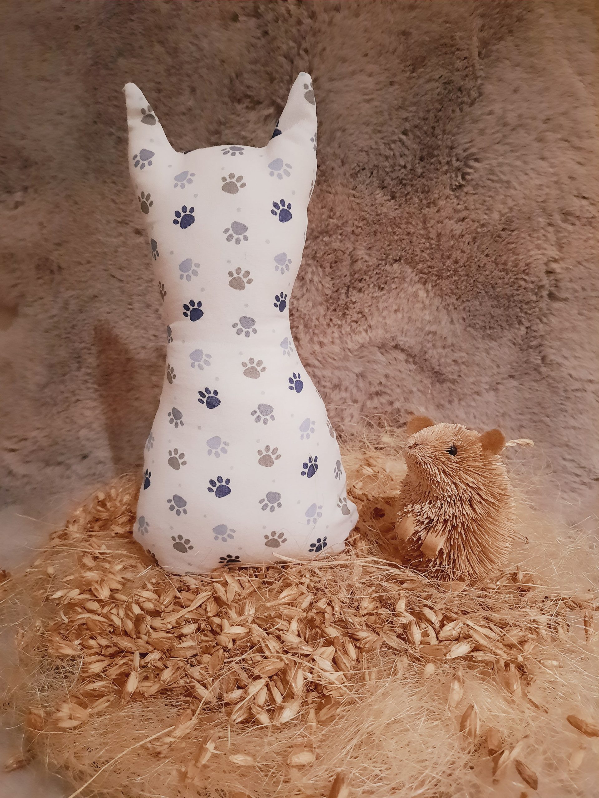 Die Füllung des Katzenkissens besteht aus Dinkelspelzen welche einen angenehmen Rascheleffekt erzeugen und Ihren Liebling zum Spielen animiert.