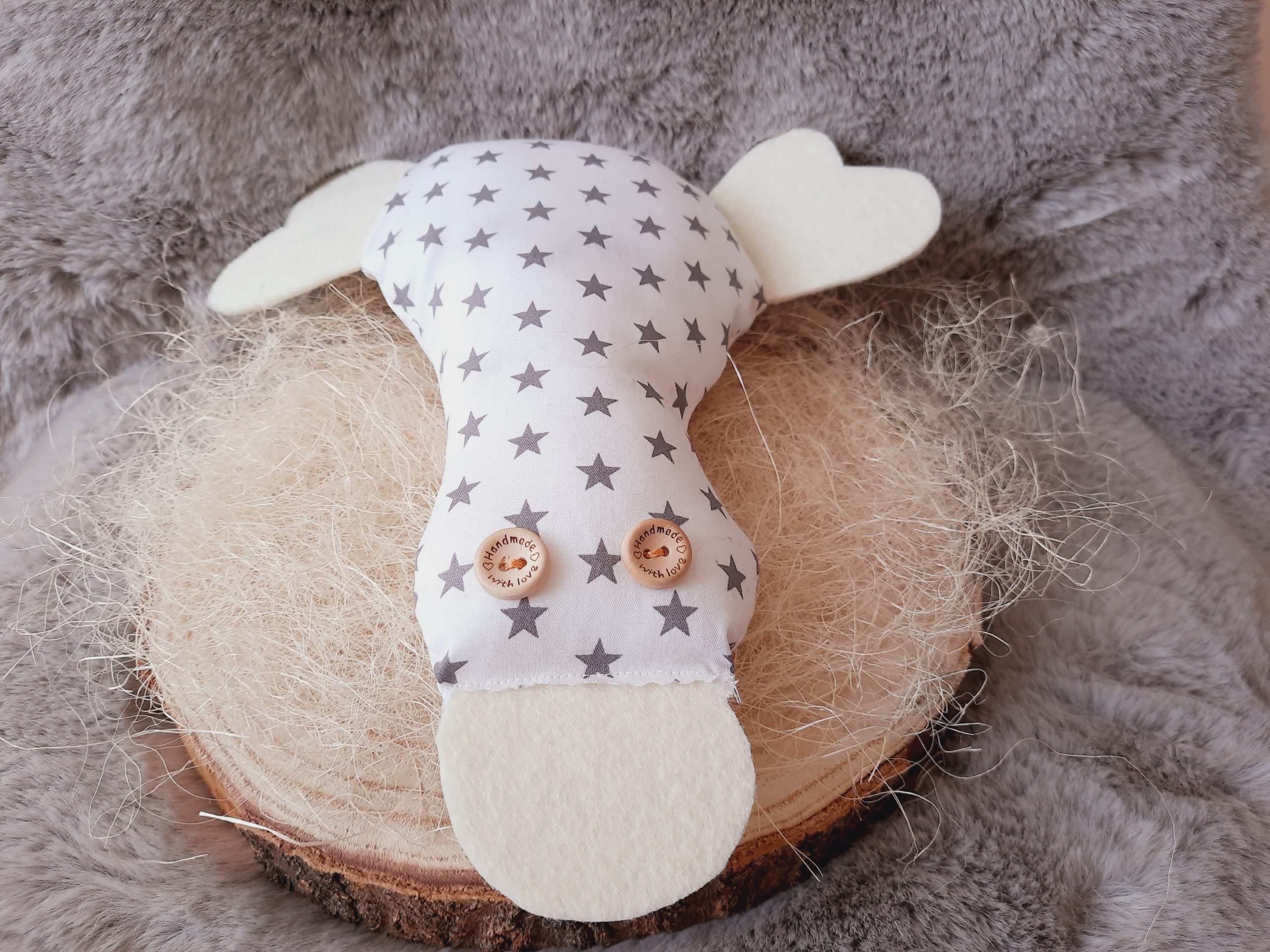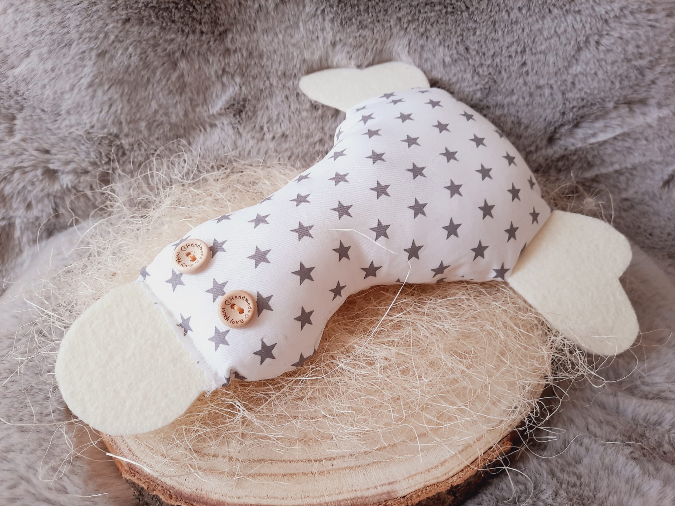 Alle Stoffprodukte sind aus 100% Baumwolle und tragen ein Öko-TEX100 ( nachhaltig und fair produziert ) Zertifikat, ebenfalls schadstofffrei und Babytextilien geeignet und werden sorgfältig per Hand genäht und gefüllt.