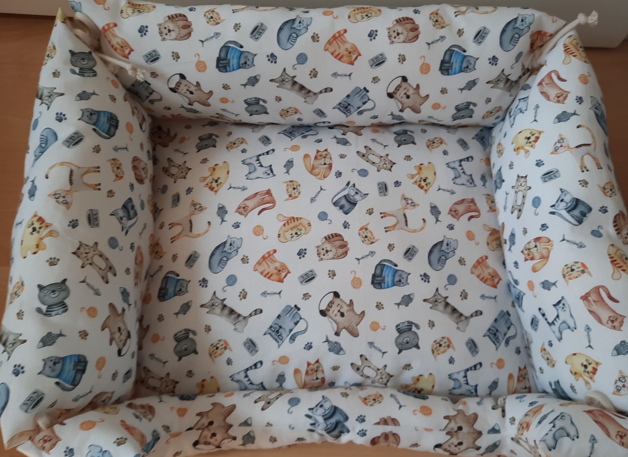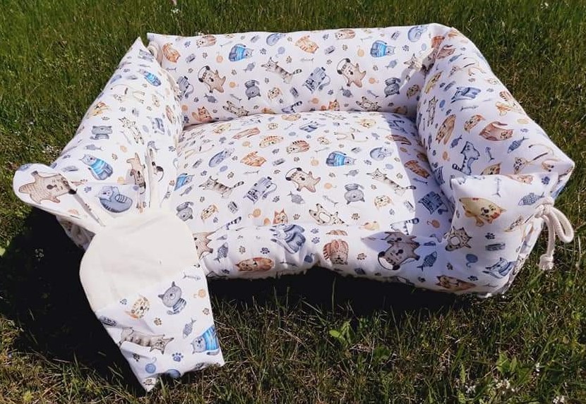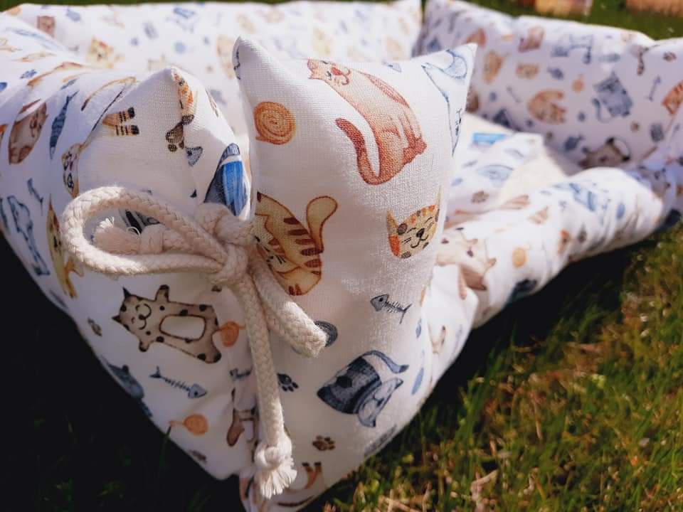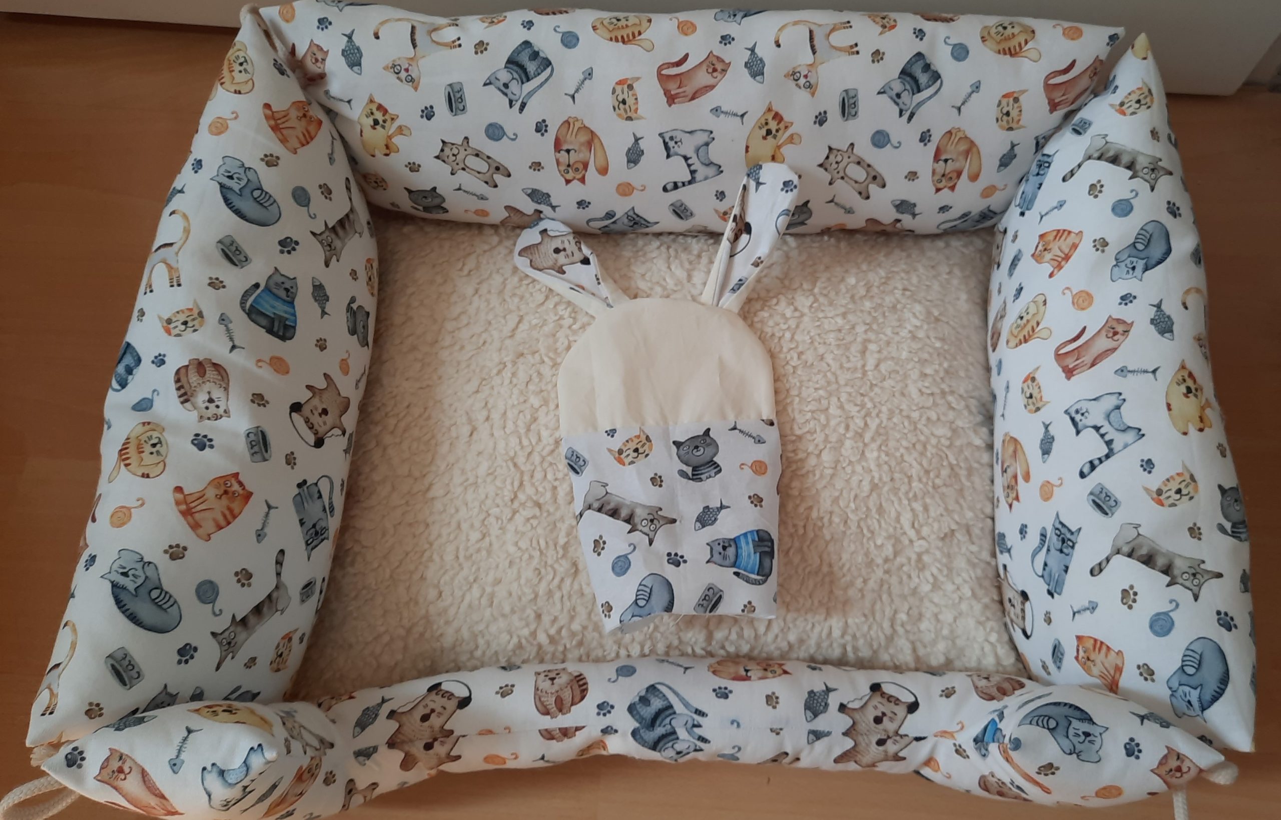 Diese entzückende Wendebettchen sucht einen neuen Kuschelfreund! Das Bettchen kommt gemeinsam mit einem dazu passenden Stoffhasen. Der kleine Stoffhase passt auf des es im Bettchen nicht spukt und der kleine Stubentiger entspannt schlafen kann. Der Stoffhase kann auf Wunsch mit Schurwolle oder Dinkel und Baldrian oder Katzenminze gefüllt werden.